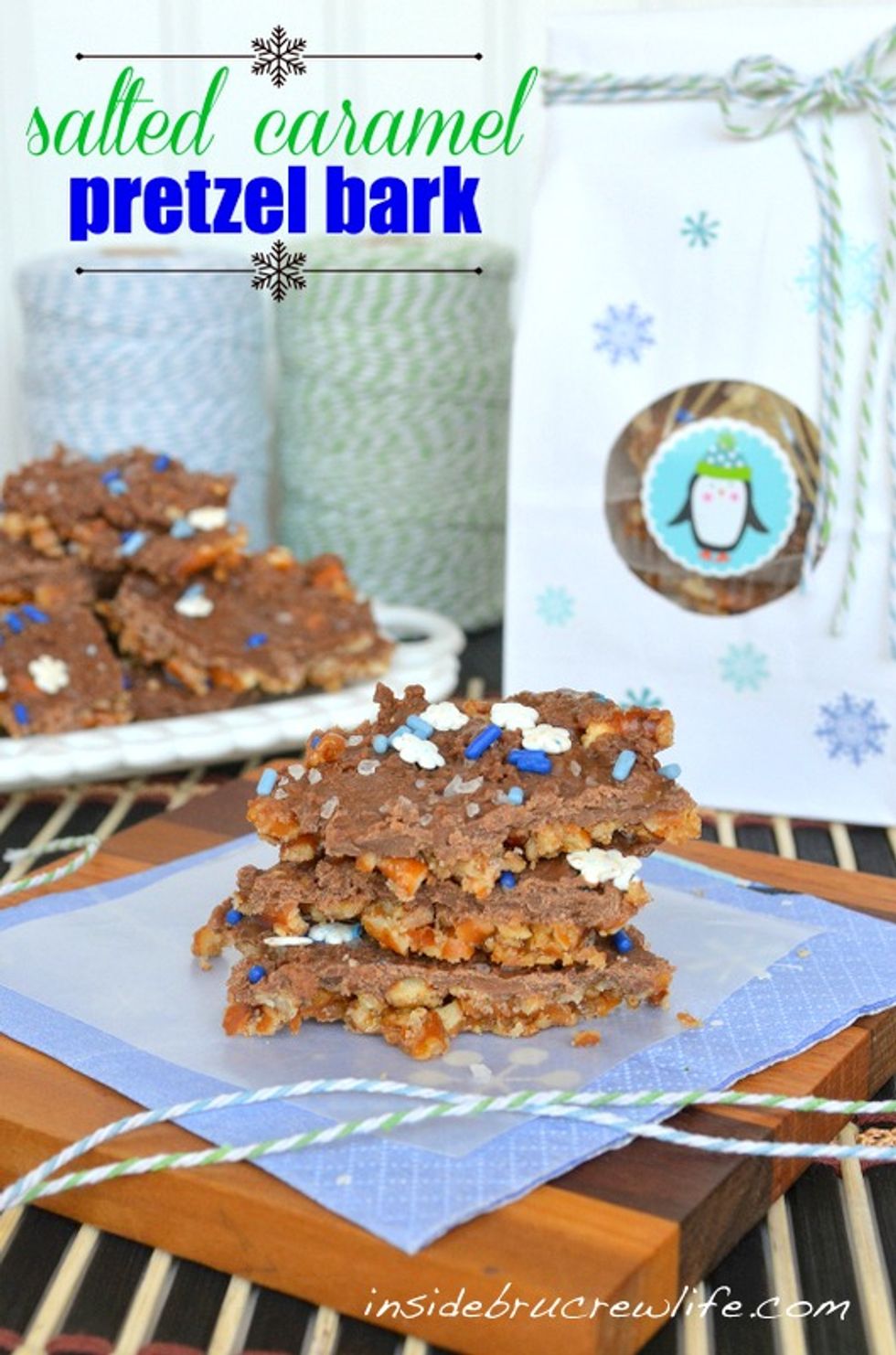 Sweet and salty pretzel crust topped with melted caramel kisses for a fast and easy holiday treat.