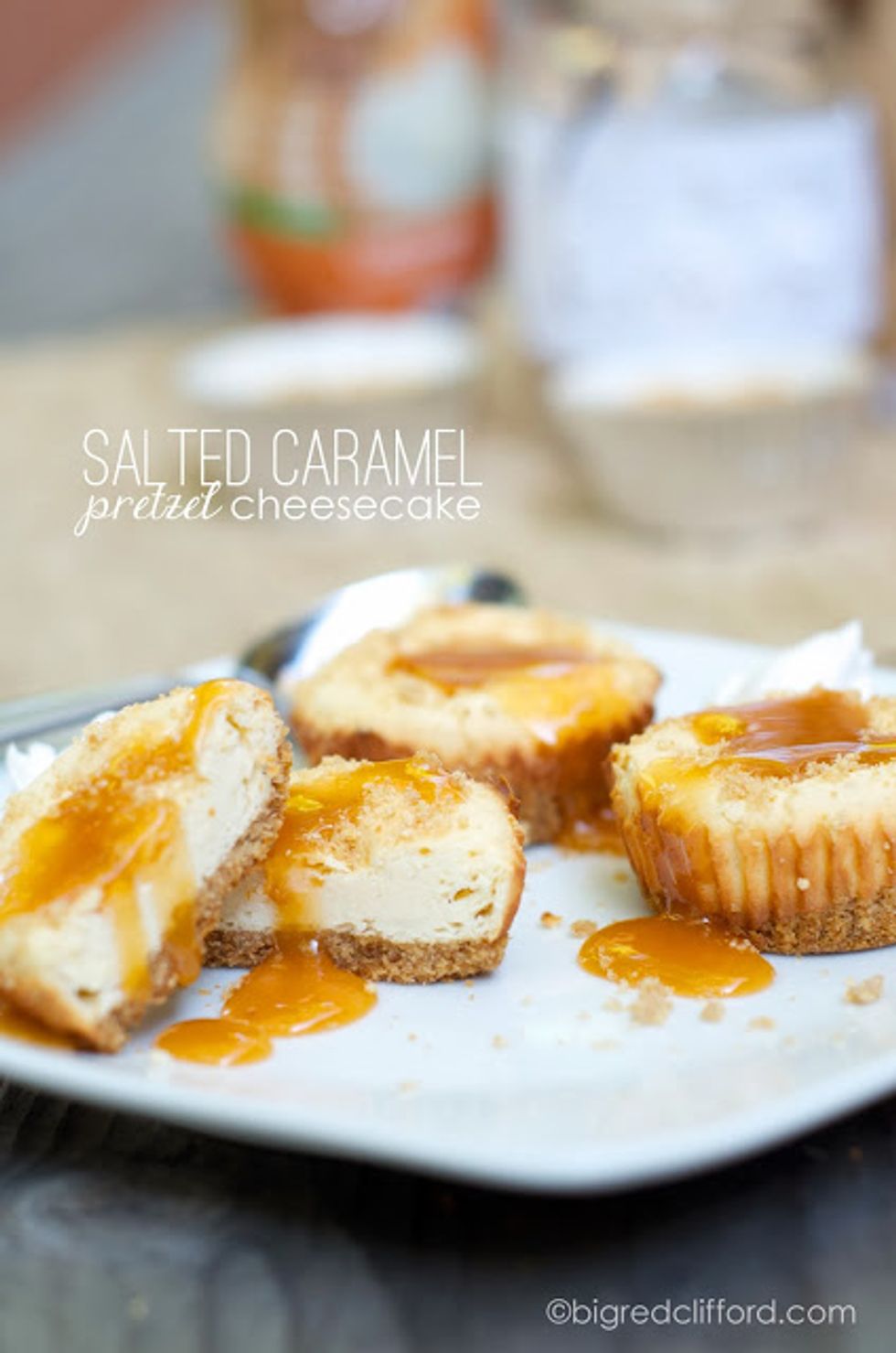 blend cream cheese and sugar till smooth. add milk and eggs. beat till smooth and add remaining ingredients. fill cupcake papers to the top. sprinkle tops with pretzel mixture. bake at 350 for 18-20 min....