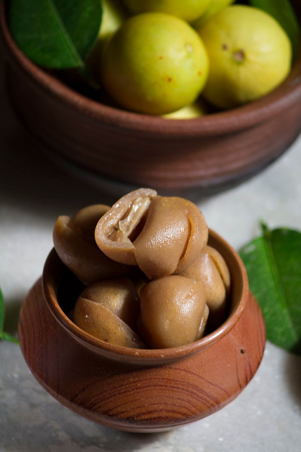 2. Place the slitted lemons in a wide glass or ceramic jar.