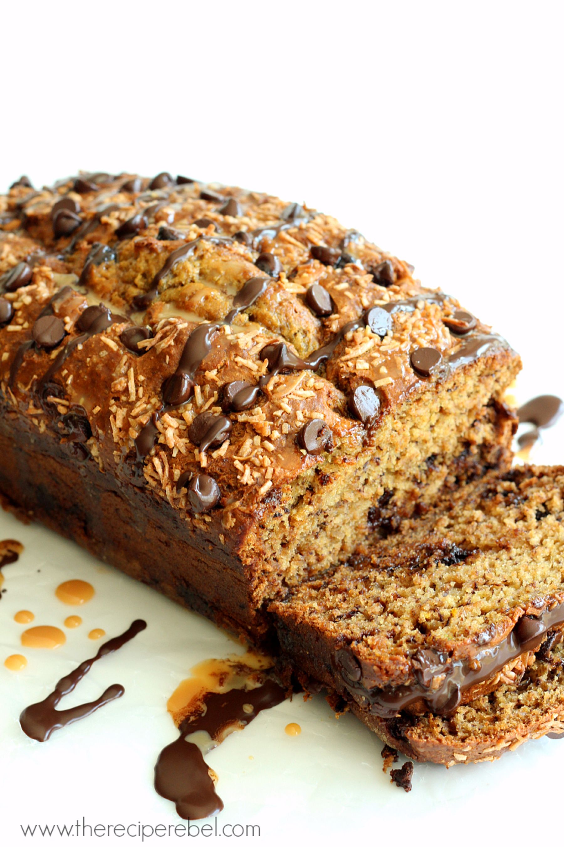 Toasted coconut, caramel and chocolate make this banana bread so good, it could even be dessert tonight!
