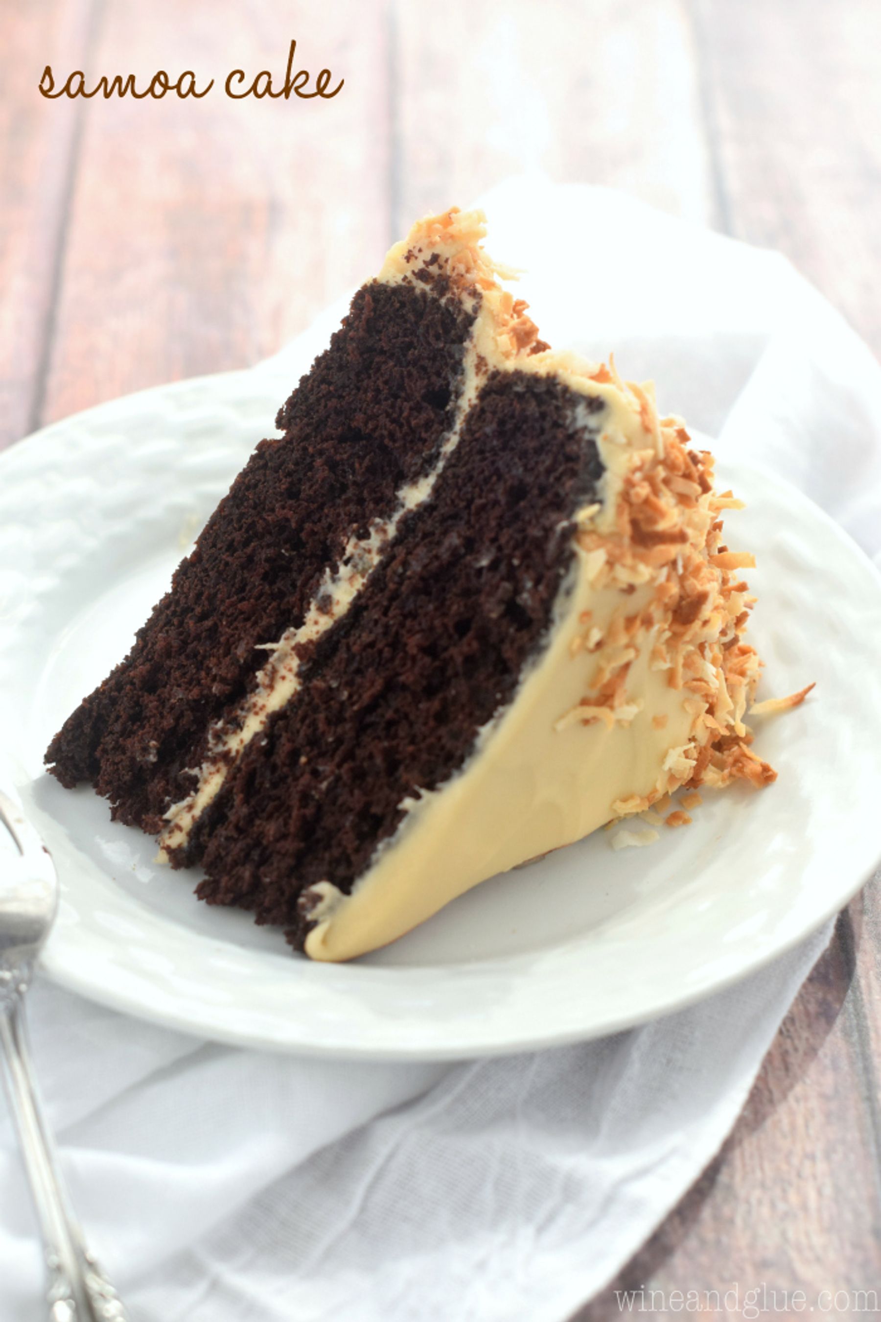 This Samoa Cake is the perfect combination of chocolate, caramel, and coconut. Moist, delicious, and perfectly rich!
