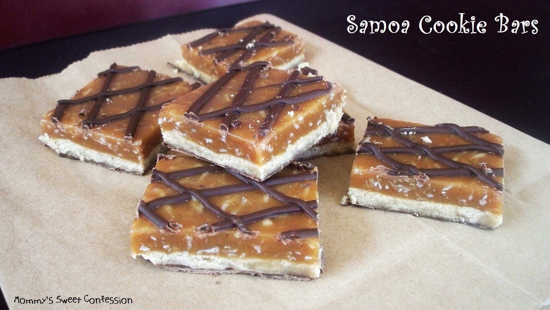 These Samoa Cookie Bars have all the same components, but are much more caramel oriented (which is really why I like the Girl Scout Cookies anyways, for the caramel). I won’t claim they taste just like them, but they are really amazing in their own right.