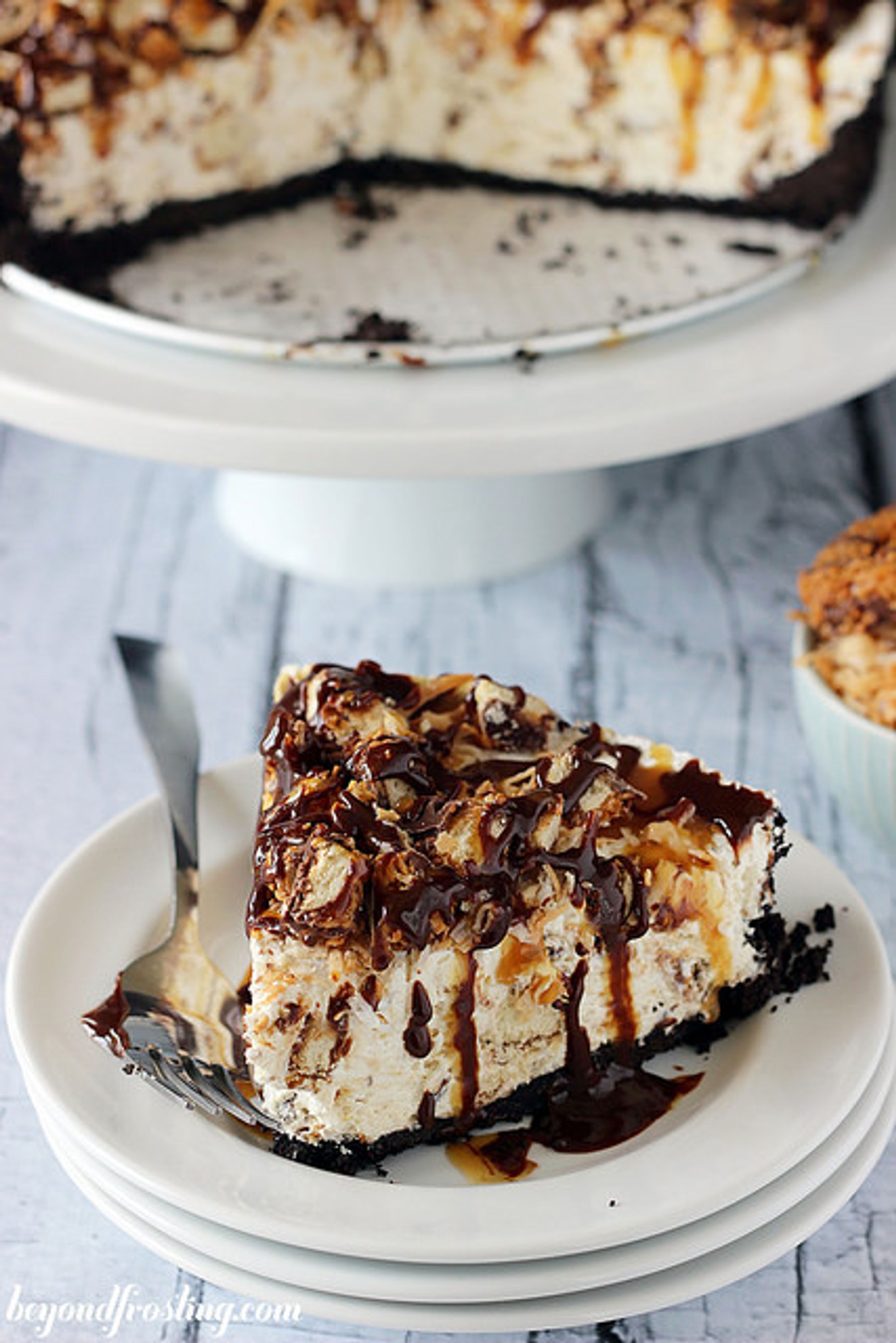 A creamy and sweet ice cream cake, featuring all the favorite flavors from Samoa Cookies