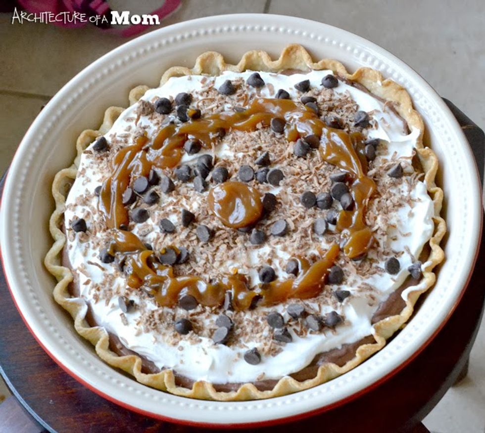 This is a cross between a classing chocolate pudding pie and a Girl Scout cookie...the samoa!