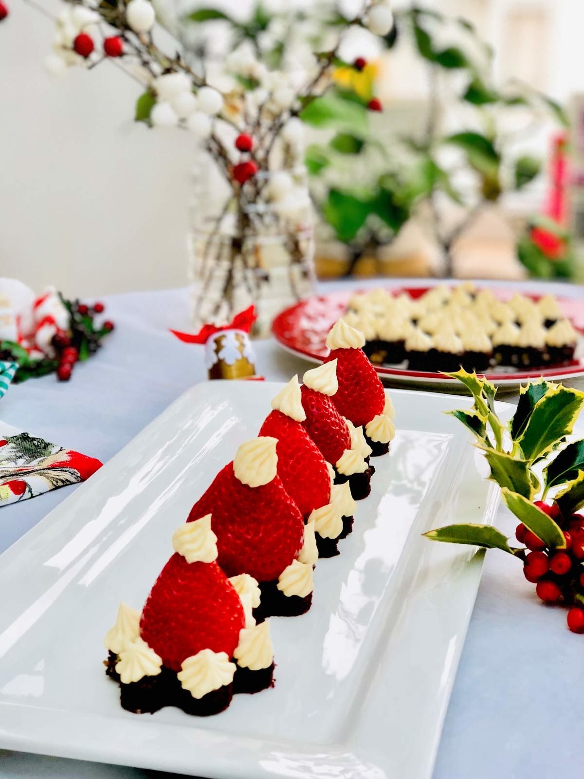 Strawberries mounted on a homemade delish brownie decorated with Baileys cream - a real Christmas treat!