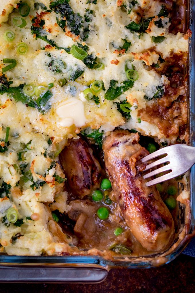 Sausage and Colcannon Bake – Comfort food, layered on top of comfort food. With gravy. One for St Paddy's day! Easy to make gluten free.