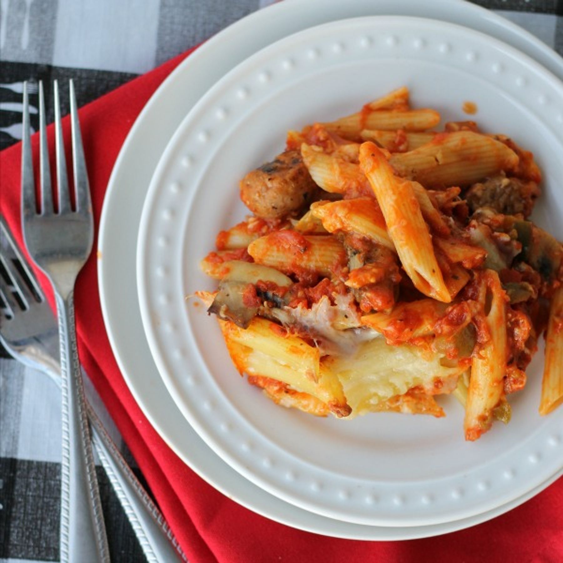 3. Add mushrooms to sausage and peppers, stirring frequently