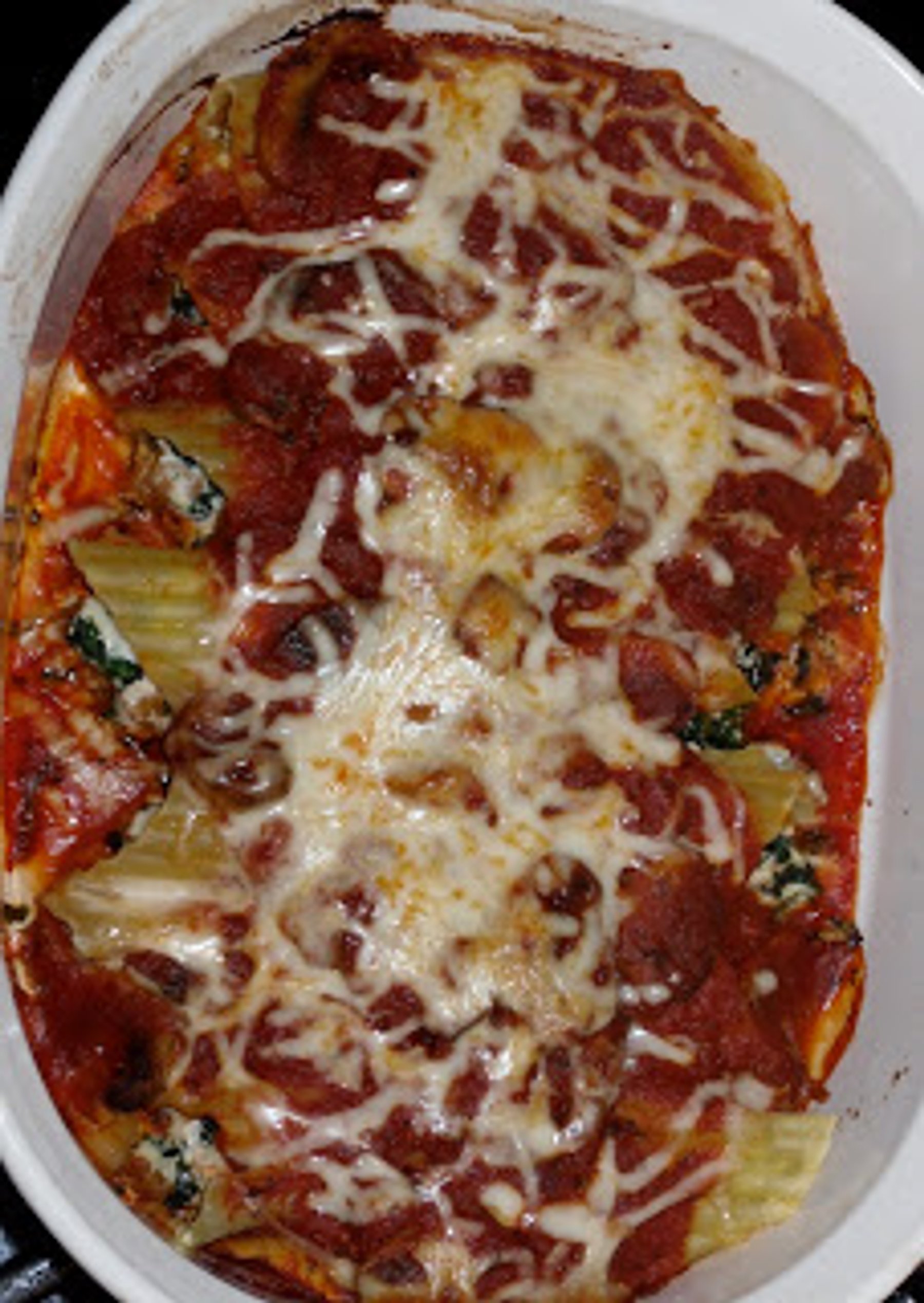 Manicotti is great when you have leftovers because you can fill them up with just about anything. I've done it with seafood, ground beef and even a spinach & mushroom vegetarian version. This recipe takes care of leftover Italian sausage and spinach. It's very easy to make and the end result was very tasty.