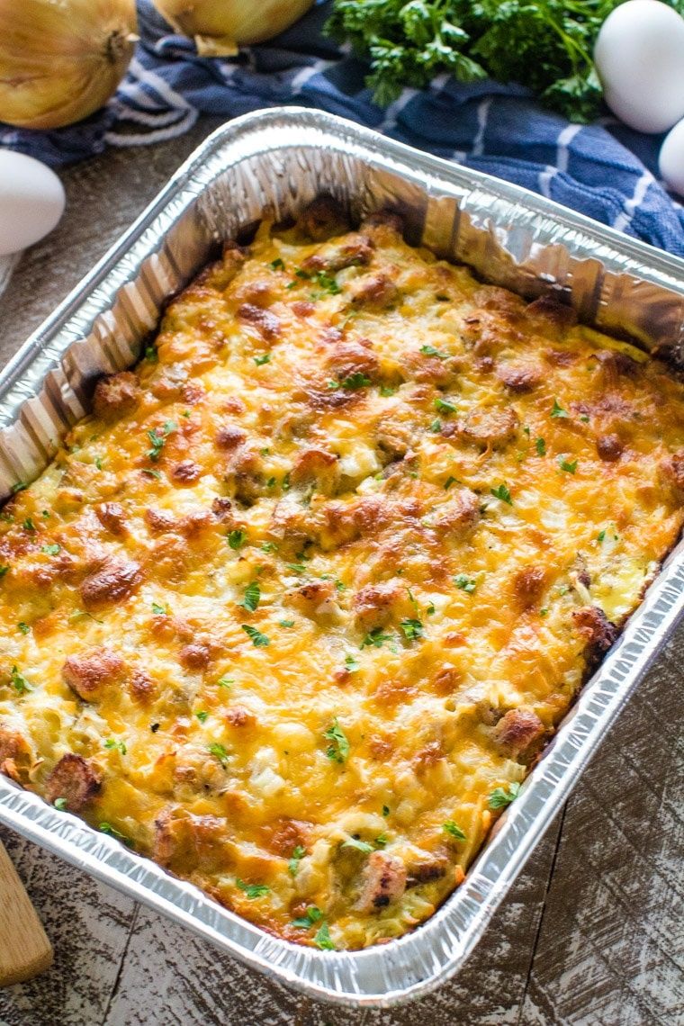 Your favorite breakfast casserole that you can make on the grill or in the oven! This quick and easy Sausage Breakfast Casserole is stuffed with hash browns, eggs, sausage and will be your new go to recipe for making a delicious grilled breakfast!