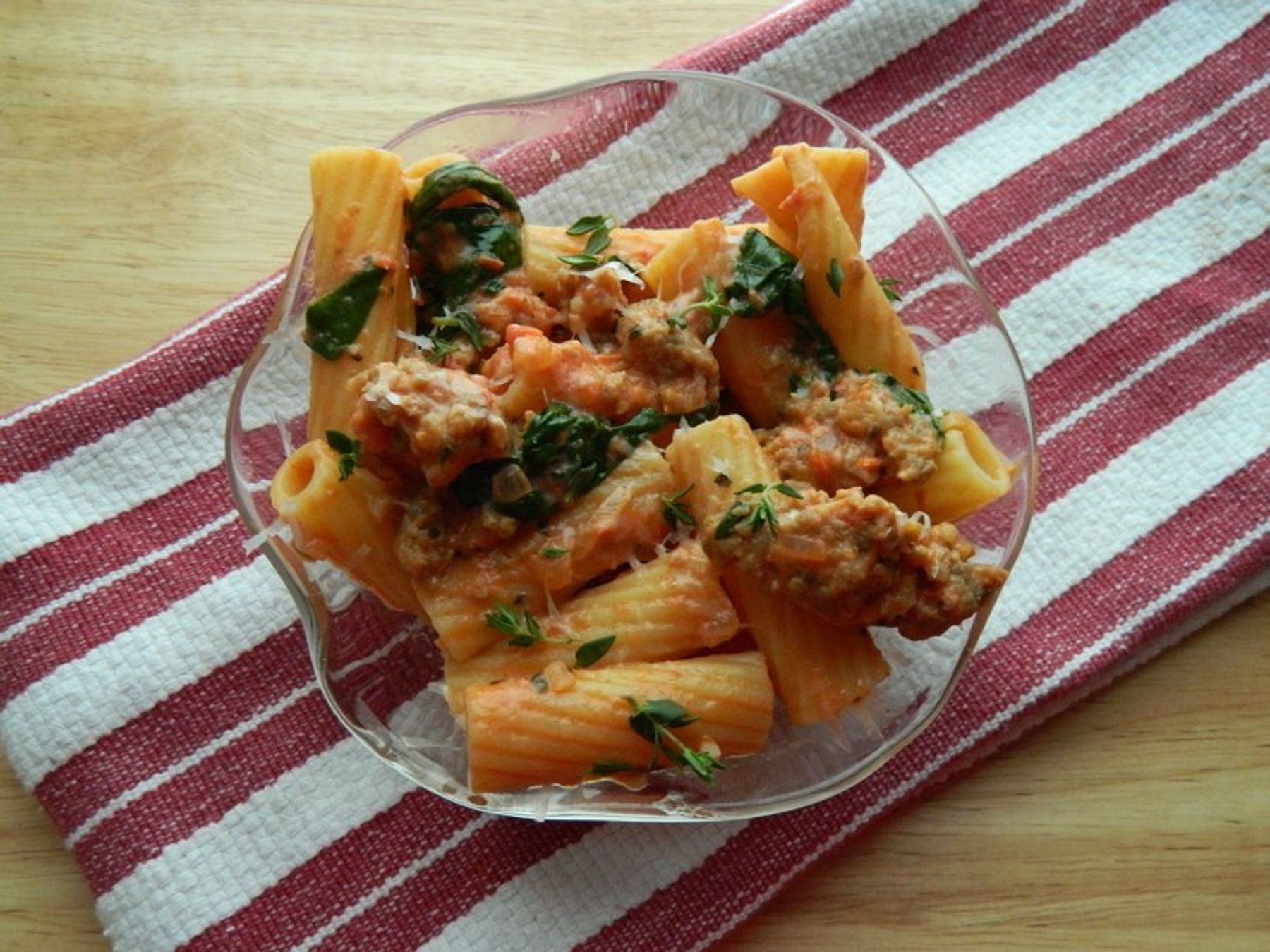 SAUSAGE PASTA IN A SPINACH ROSE SAUCE