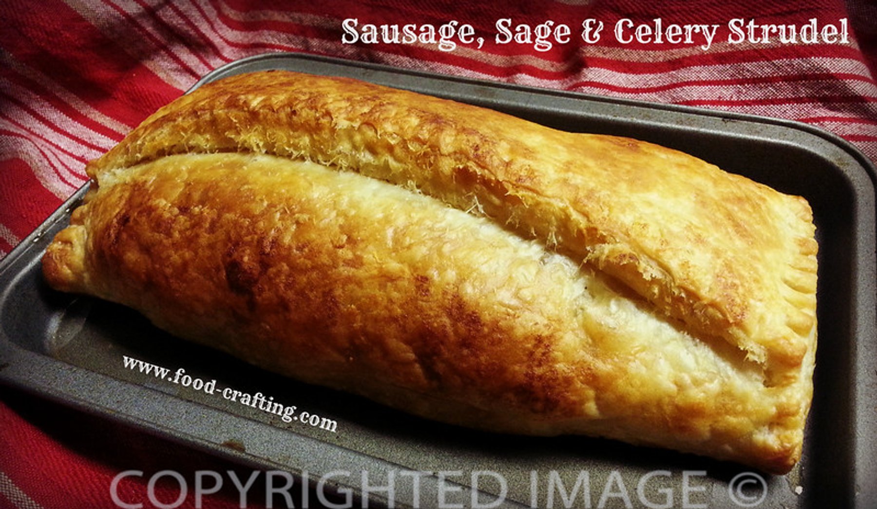 A savory strudel filled with sage seasoned sausage and baked in puff pastry to a crispy golden brown.