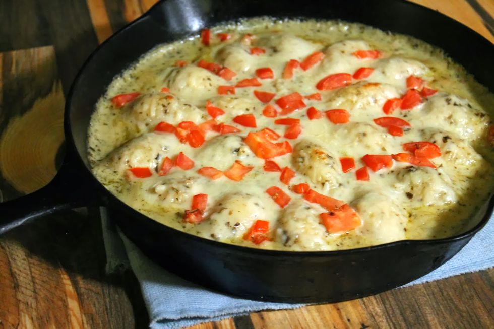 Preheat oven to 350 degrees. In a thick bottomed sauce pan melt butter and whisk in garlic, pesto and cook for an additional minute. Whisk in flour and cook until it begins to turn golden (5-6 minutes). Add...