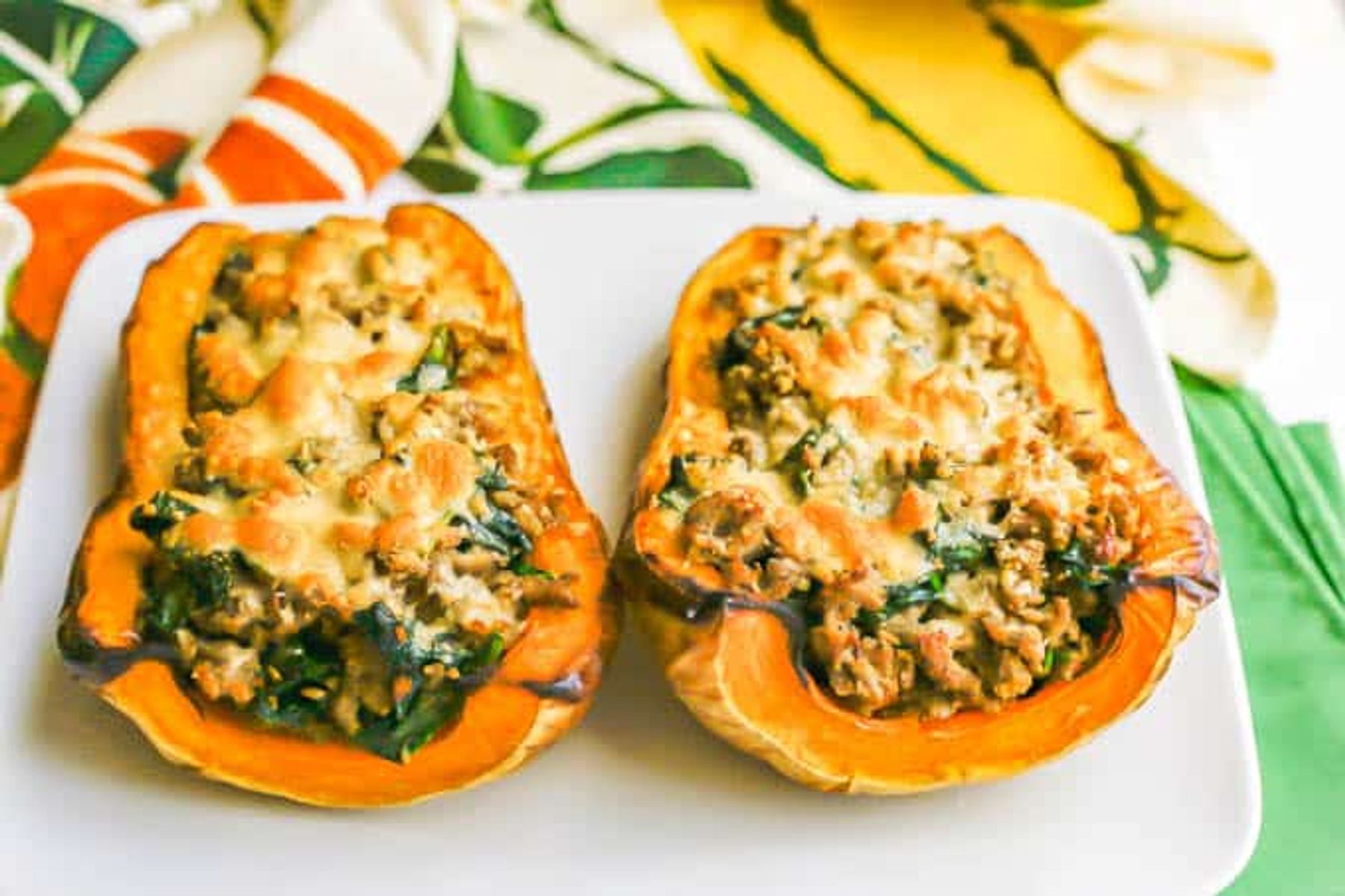 Sausage Stuffed Butternut Squash with Spinach - Family Food on the Table