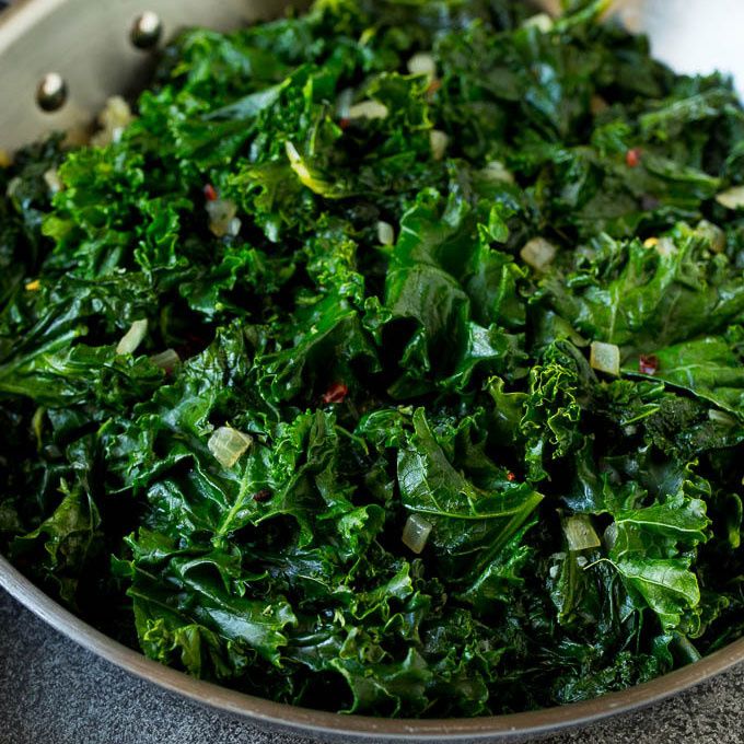 This sauteed kale recipe is fresh greens cooked with butter, garlic and onions until tender, then topped with fresh herbs. A simple and healthy side dish that pairs perfectly with chicken, fish and beef.