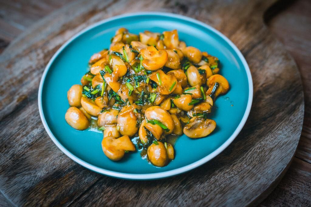 Sauteed Mushrooms With Garlic, Butter, Soy Sauce And Scallions