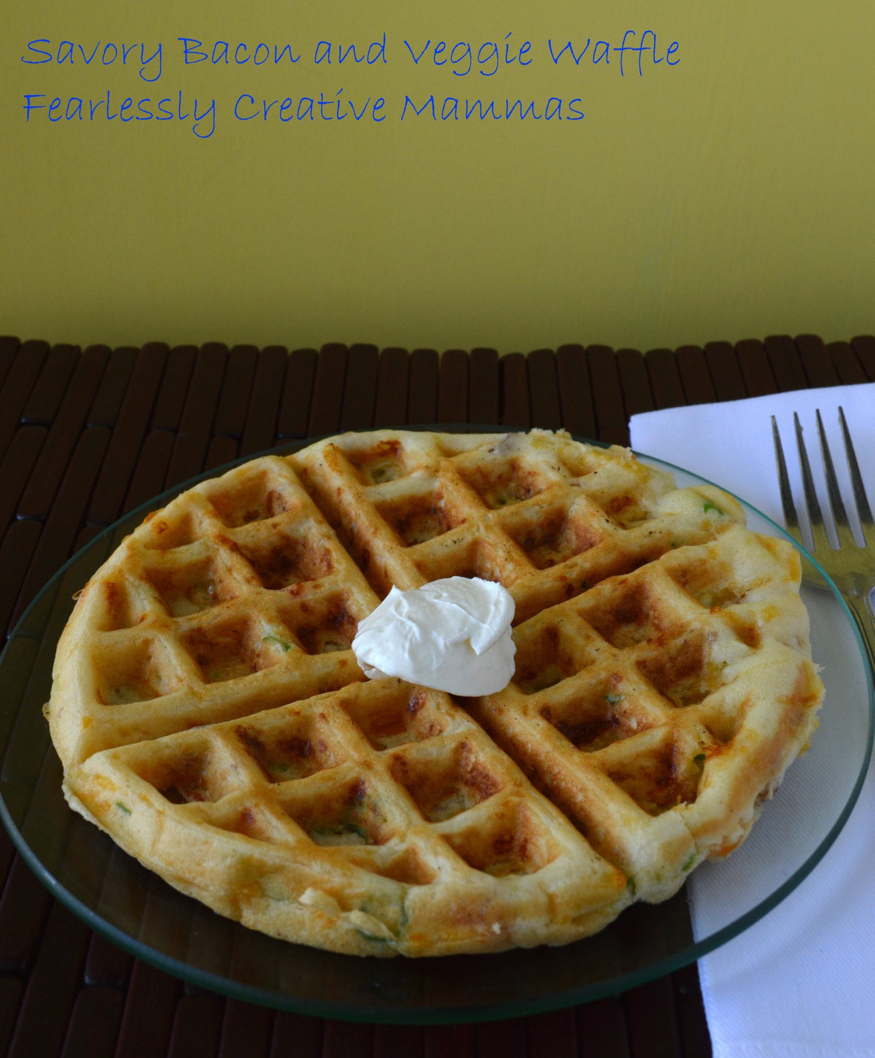 Instead of sweet, this is a savory waffle. It has veggies and bacon and is a great lunch/brunch recipe!