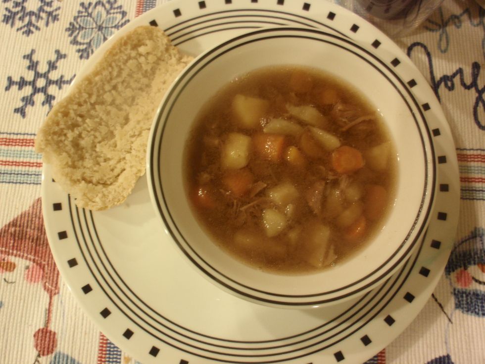 Wash and skin carrots and potatoes. Chop into bite size pieces. Place all ingredients in crock pot. Cook on high for 4 hours or low for 4-6 hours. It's that easy! Pair with crackers and homemade bread. Enjoy!