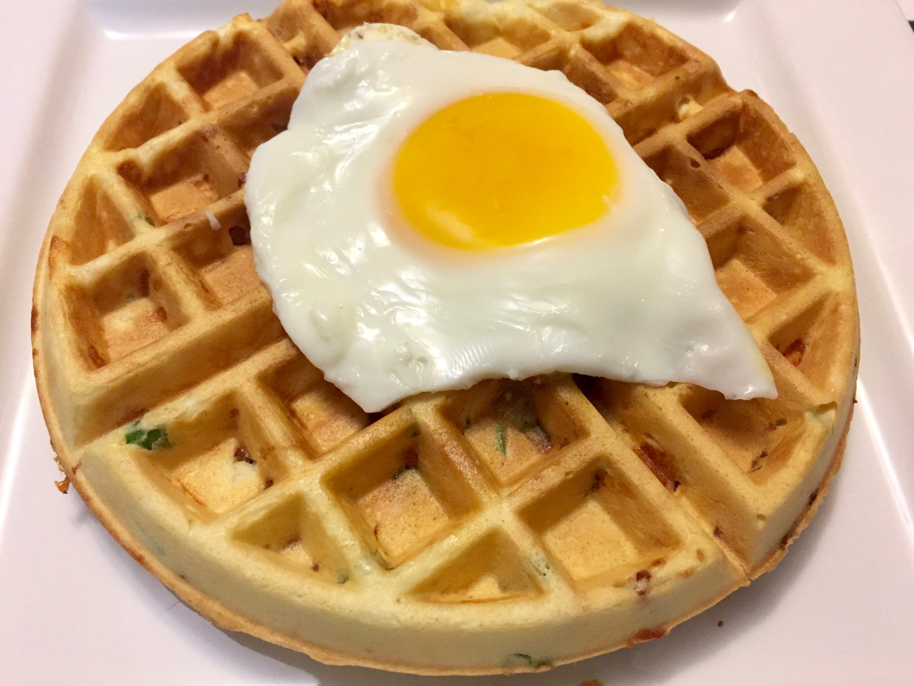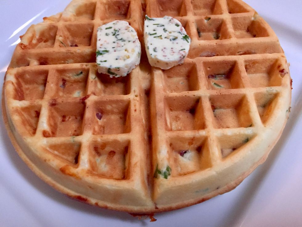 This is the perfect excuse to have Waffles for dinner! These waffles are packed with flavour. Top with a fried egg and you have yourself a delicious brunch or dinner!