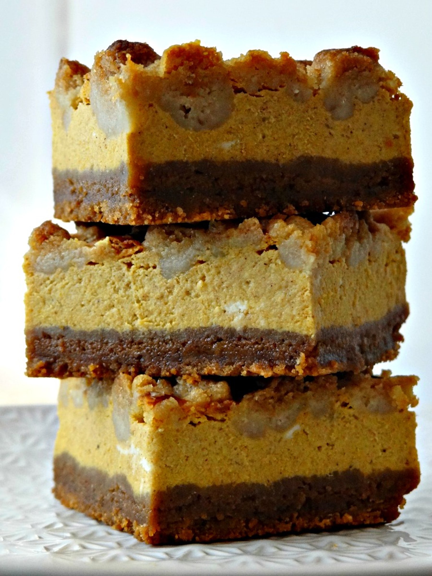 Now that Fall is just around the corner, temps are beginning to cool, what better way to celebrate that with these super easy and delicious pumpkin cheesecake bars with a crunchy biscoff crust. I dare you to try to just eat one!