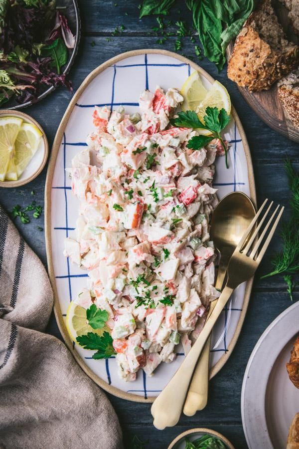 Break the imitation crab into bite-size chunks or chop with a knife; place in a large bowl. Add the remaining ingredients and gently toss to combine. Season with salt and pepper, to taste. Cover and...