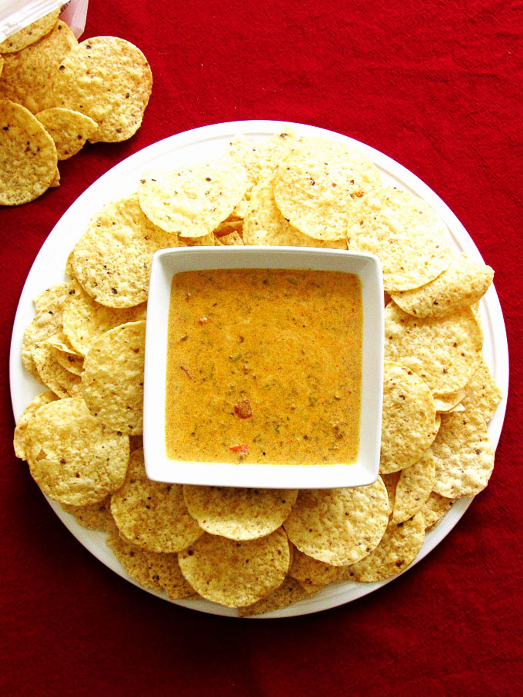 Seasoned Beef Queso Dip is the perfect recipe for your next family gathering, sporting event or holiday party. Homemade cheese sauce pairs with seasoned taco beef, tomatoes, onions, and green chilies for the ultimate snack to share.