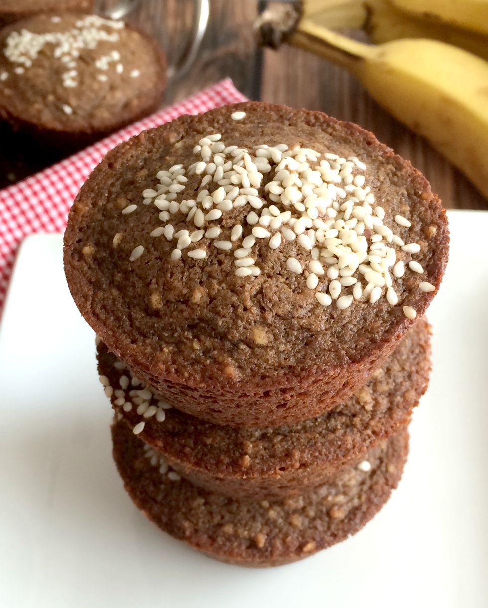 Delicious, gluten free Sesame Banana Buckwheat Muffins. Hard on the outside and creamy, melt in your mouth on the inside!