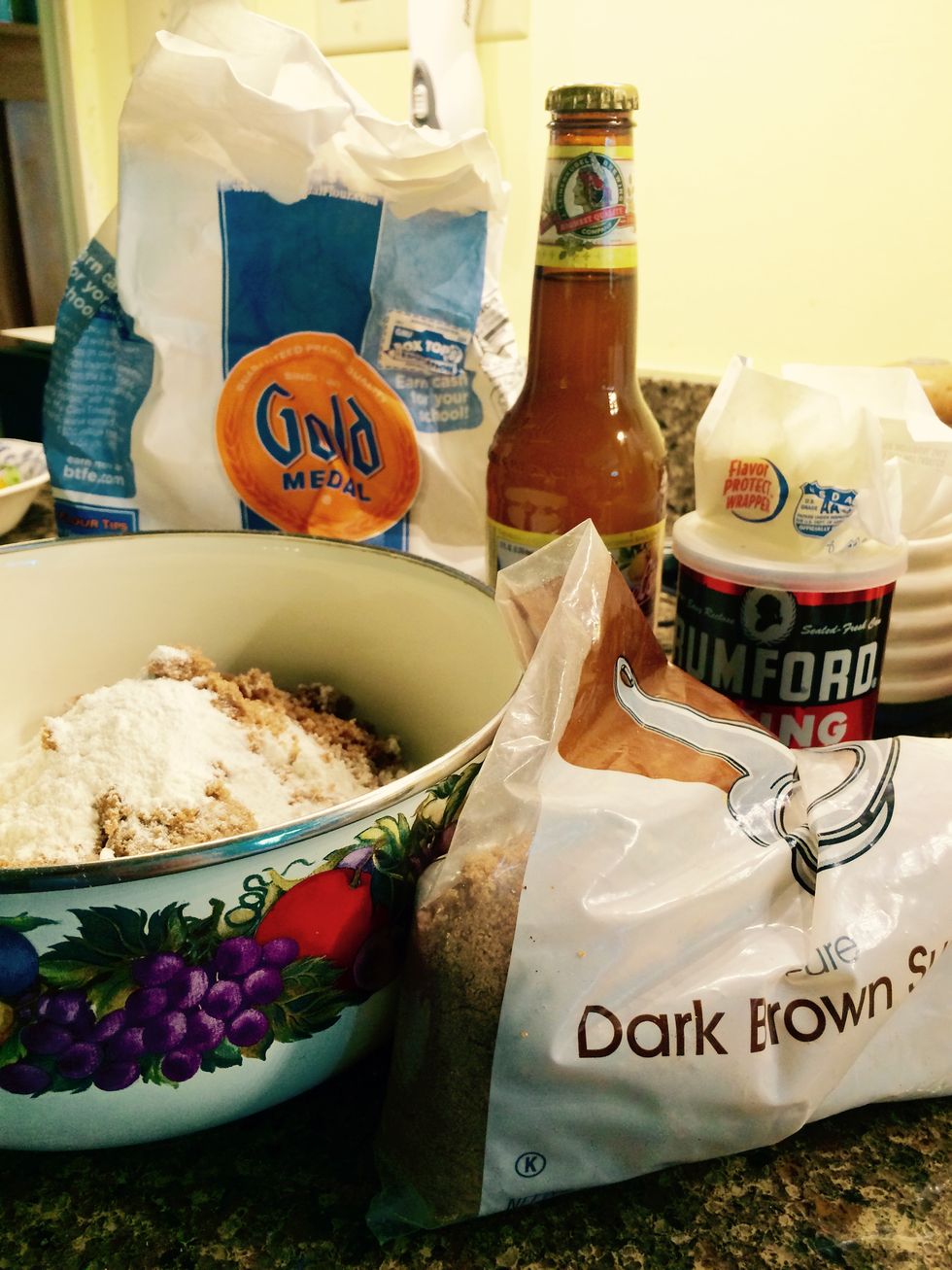 In a large bowl, whisk the flour, sugar, baking powder and salt well