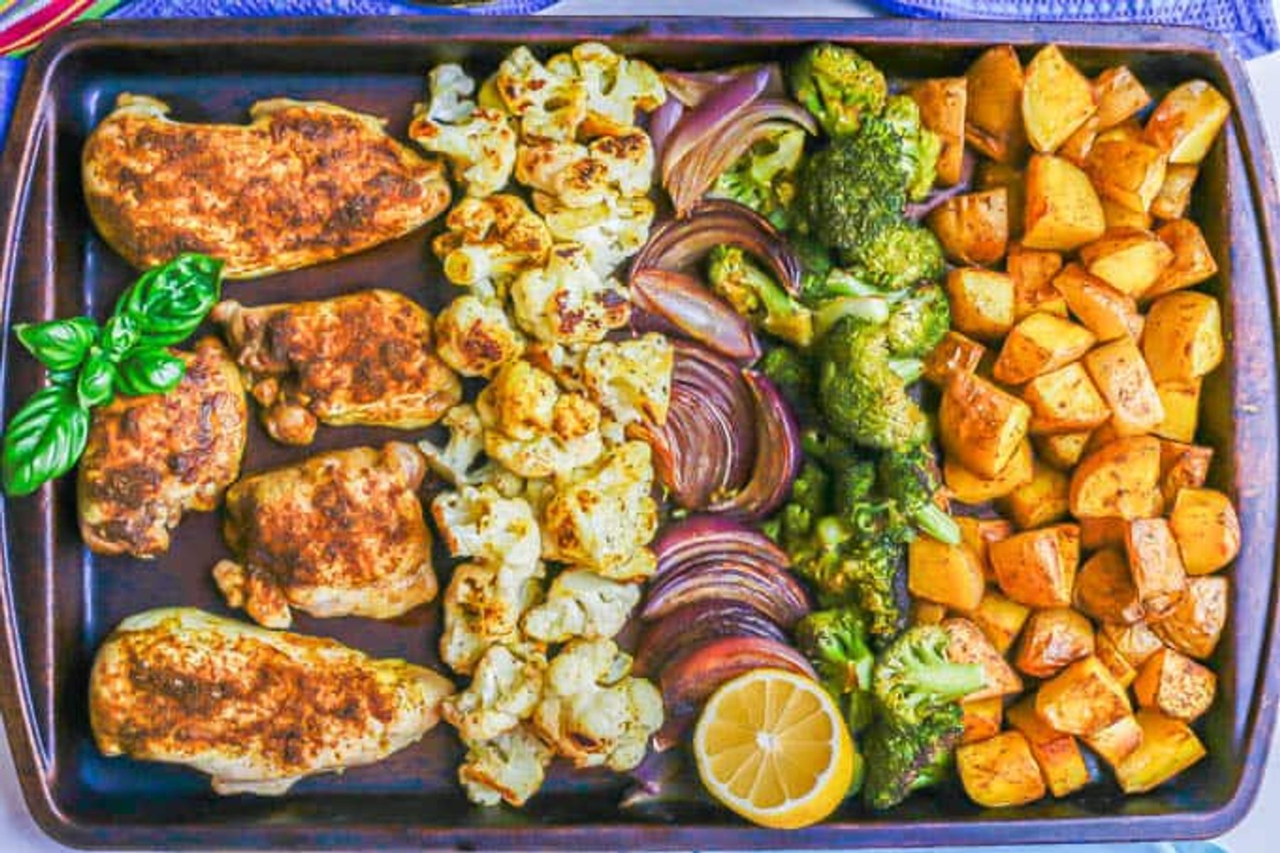 Sheet pan Indian chicken and veggies features a bold, warm spice blend that coats the chicken, potatoes and vegetables, which are roasted until cooked, tender and browned. This easy, flavorful dinner is great any night of the week!