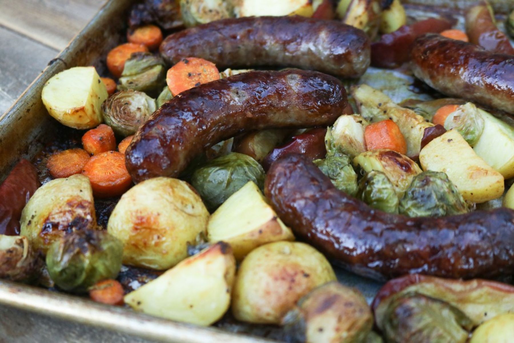 Sheet Pan Oktoberfest Brats and Veggies