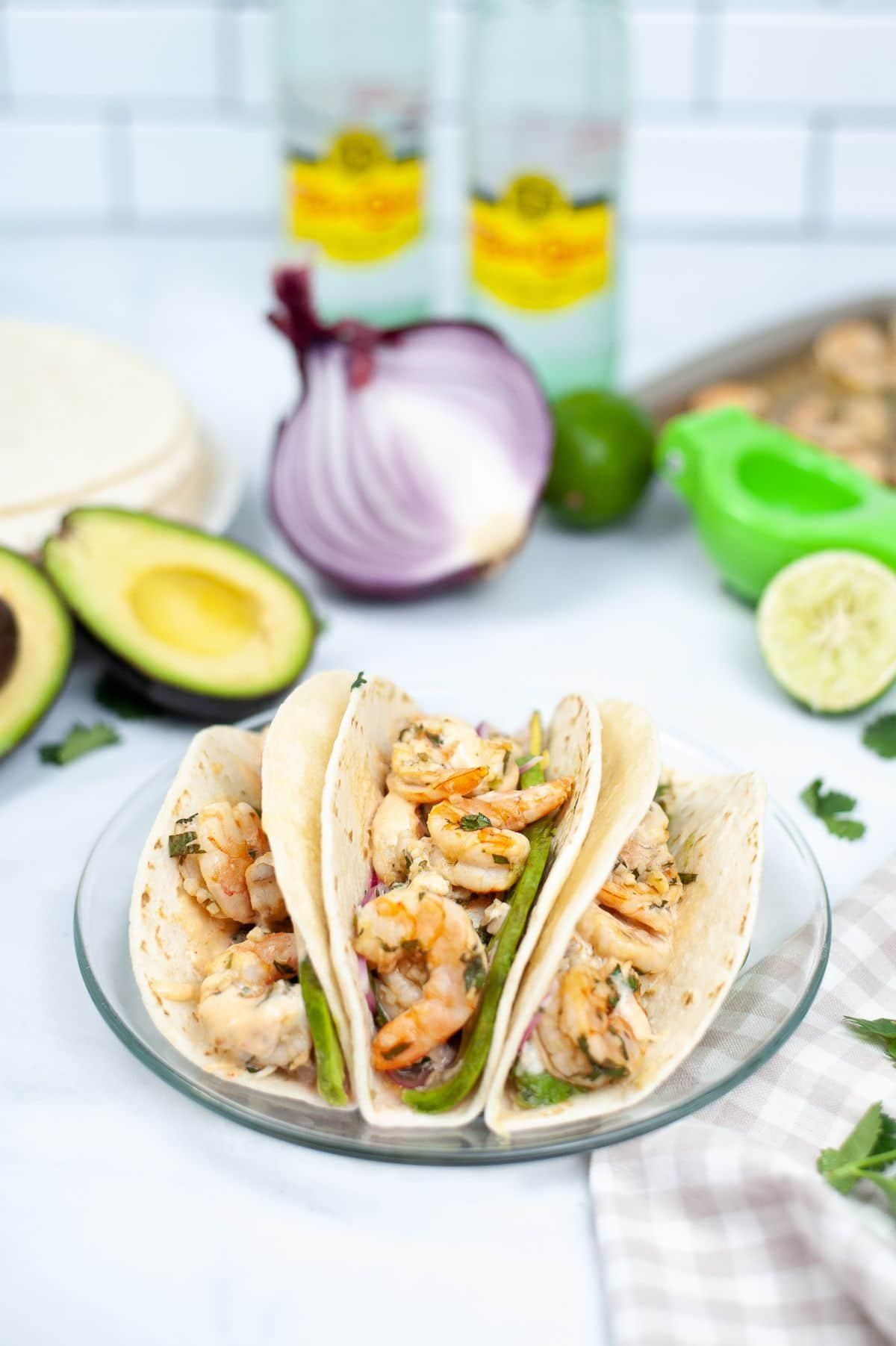 "Sheet Pan Shrimp Tacos are an easy weeknight meal that is simple to make and tastes delicious! Plus, cleanup is a breeze since everything cooks on one pan. If you love sheet pan recipes, you’ll love these shrimp tacos! Shrimp is a healthy and versatile protein that can be used in a variety of recipes. These sheet pan shrimp tacos are easy to make and taste amazing! They are packed with flavor and can be made in under 30 minutes. "
