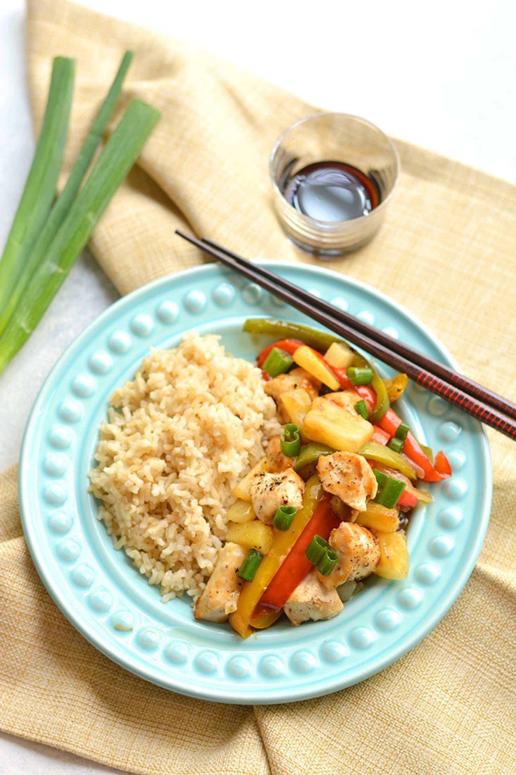 This Sheet Pan Sweet & Sour Chicken is baked to perfection on one pan in 20-minutes. A quick & easy meal that's a healthier version of take-out! Pair with brown or cauliflower rice for a complete meal. Gluten Free + Low Calorie!