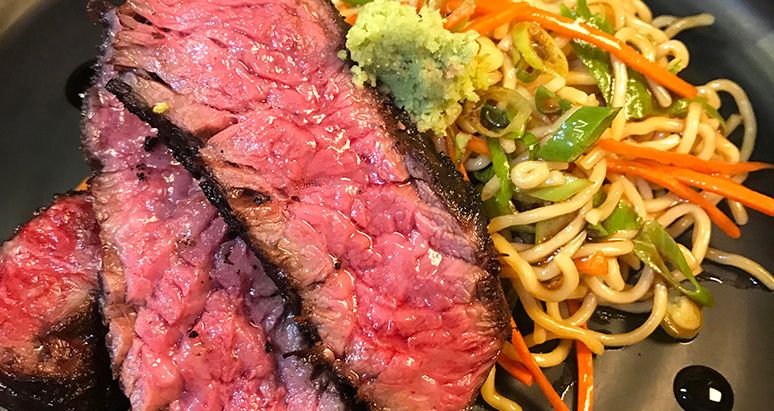 This Shichimi Togarashi Wagyu Bavette Steak & Sesame Ramen Noodle Salad recipe is a must-try! The Fullblood Wagyu bavette steak is marinated with Shichimi Togarashi and a Japanese Seven Spice Blend. Grill to a medium-rare finish and serve with a ramen noodle salad.