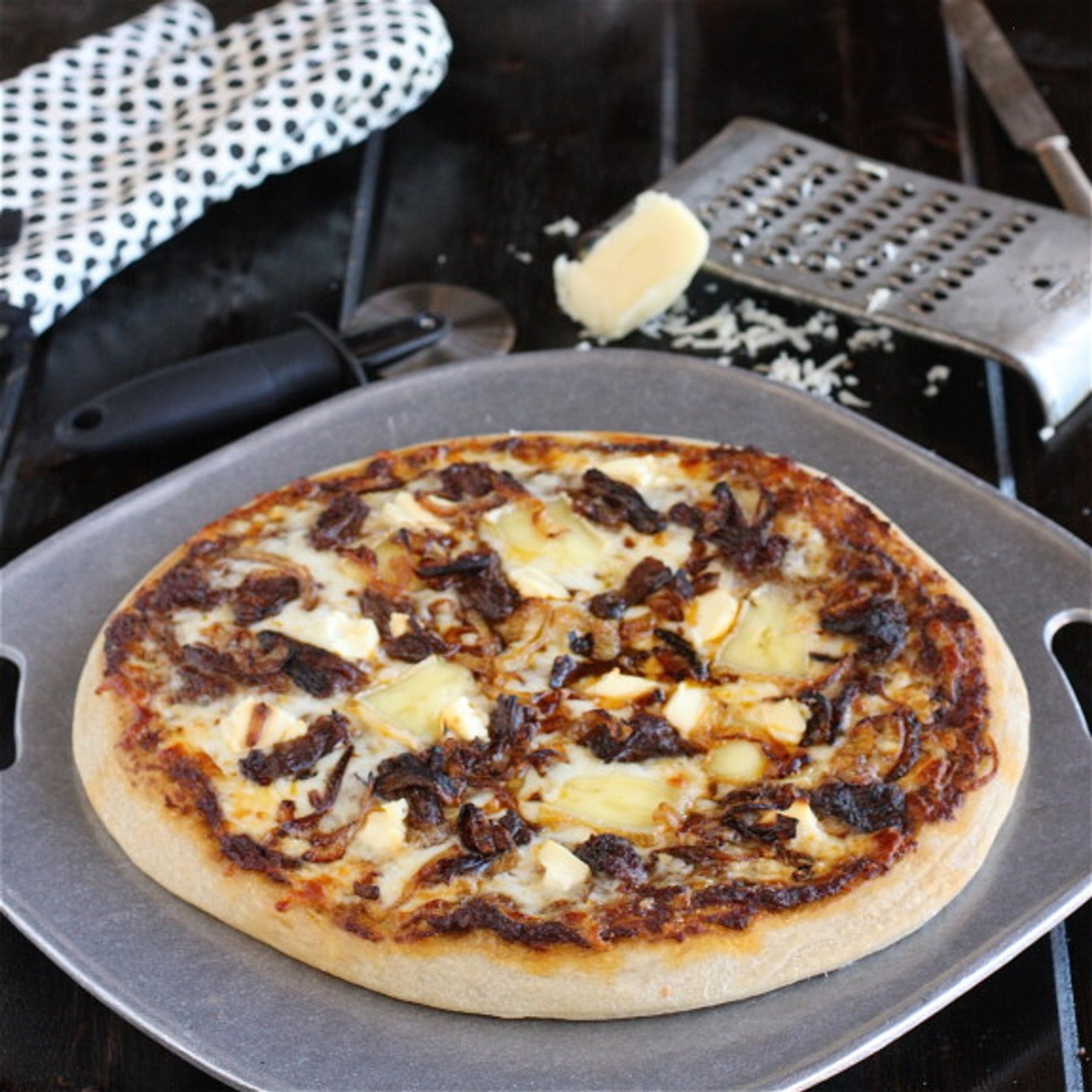 Short Rib, Brie and Ricotta Pizza with Caramelized Onions