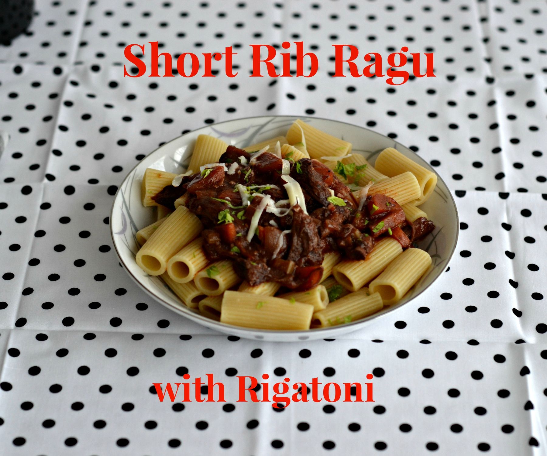 Ragu made with slow cooked short ribs, vegetables, herbs, and red wine