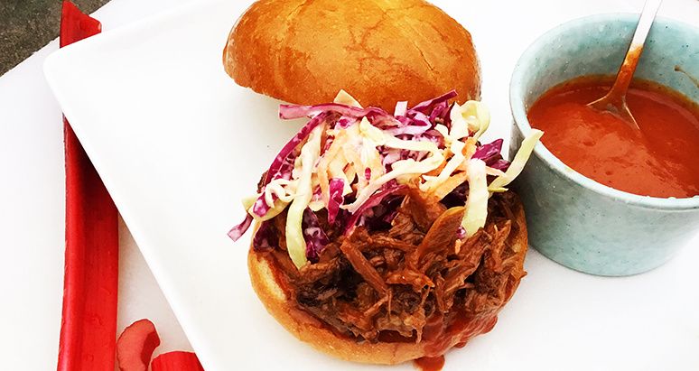 Short Ribs Sandwich, Rhubarb BBQ Sauce & Coleslaw