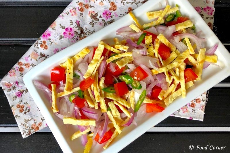 You need to cook omelette for for this recipe.After that, prepare onion and green chili.