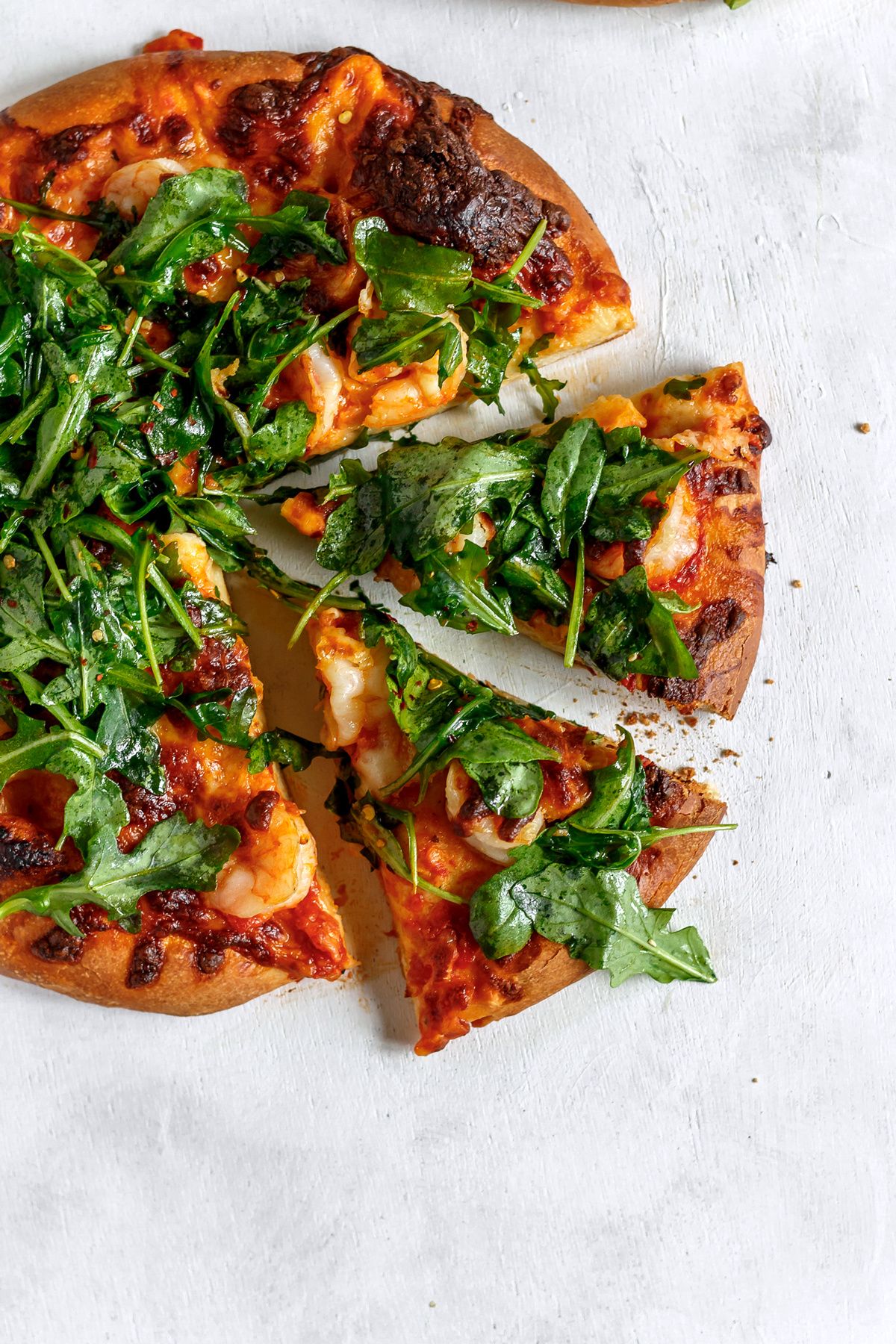 This pizza is a simple and delicious variation to your regular pizza – Shrimp and Arugula Pizza has an arrabbiata base, lots of mozzarella, and topped with a simple arugula salad.