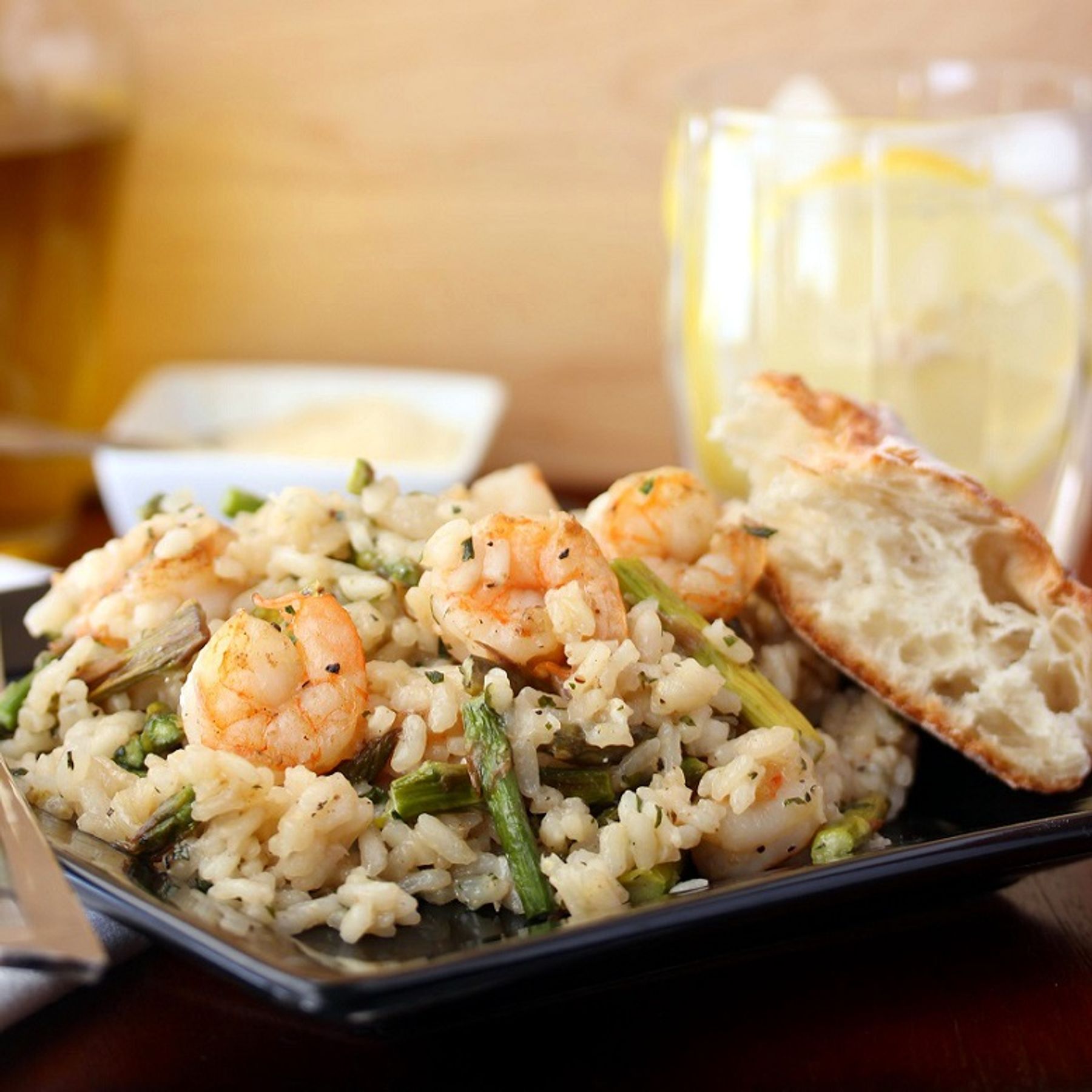 Remove woody stems from asparagus and cut into 1 inch pieces. Spread out on a baking sheet and toss with 1 tbsp olive oil and season with salt and pepper.