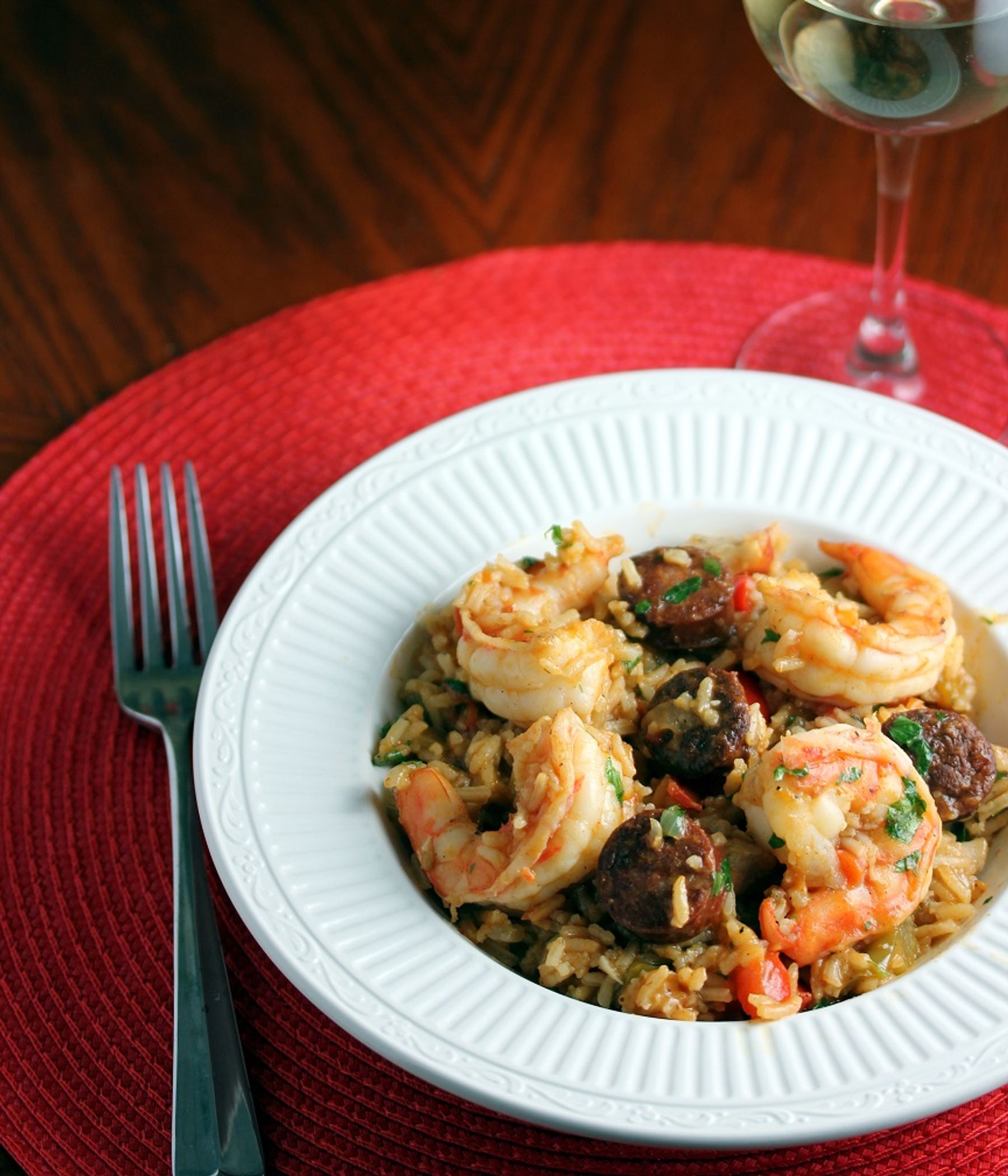 Shrimp, Chicken and Chorizo Jambalaya - A delicious one pot wonder that's on the table in less than an hour!
