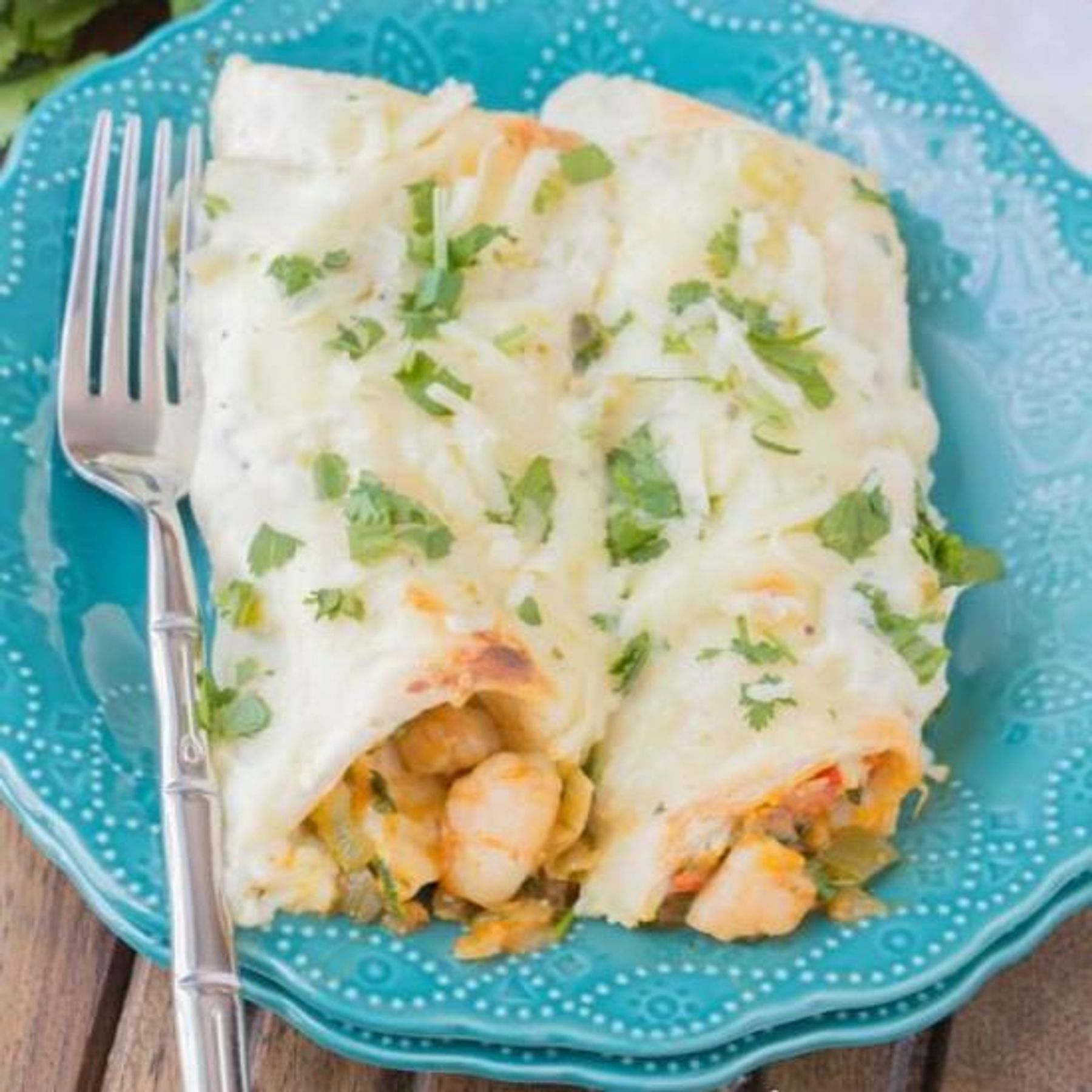 Shrimp Enchiladas ~ Filled with tender, flavorful shrimp then topped with a delicious homemade creamy sauce. You will Love this Quick, Easy Weeknight Meal!