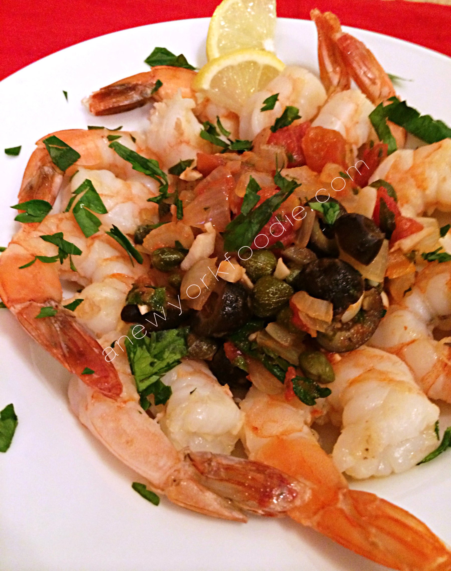 My Shrimp Livornese is a spinoff of a Red Snapper Livornese recipe that I make. The original recipe has a history that goes along with it, This dish comes from an area of Italy called Livorno which is in the Tuscany region; in English it’s called Leghorn. Livorno, at that time, was ruled by Fernando I de Medici, Grand Duke of the powerful Medici family. This recipe has roots in Livorno’s Jewish population of that time period when the Grand Duke attracted many Jewish immigrants to that area af