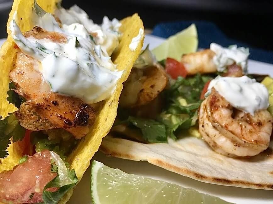 fish tacoshrimp tacoshrimp tacos with avocado grapefruit and creamy cilantro saucemaplewoodroadmaplewood roadsimplequickeasyfastlunchdinnerfreshrefreshingsummerlightspicycreamyvegetablegardenvegetable gardenherb gardenshrimpchili powderhot saucetomatograpefruitfruitavocadolimesour creamcilantrosoft tacohard tacocrunchy tacotaco