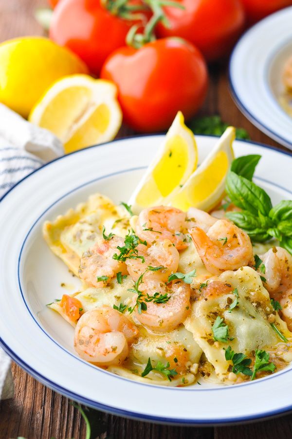 Shrimp with Ravioli is a quick and easy dinner recipe that tastes like a special meal from a little Italian bistro. A pesto, tomato and white wine sauce brings the fresh, flavorful dish together — in less than 30 minutes!