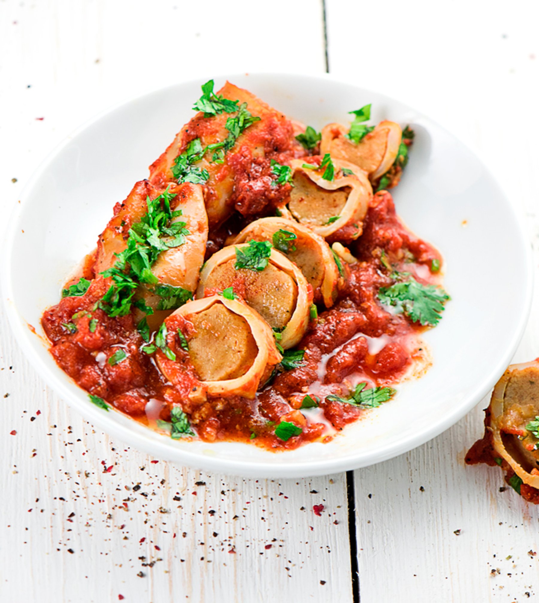 This Sicilian-style stuffed squid is so simple to make and absolutely delicious. It is gorgeous! Just slice and serve with linguine