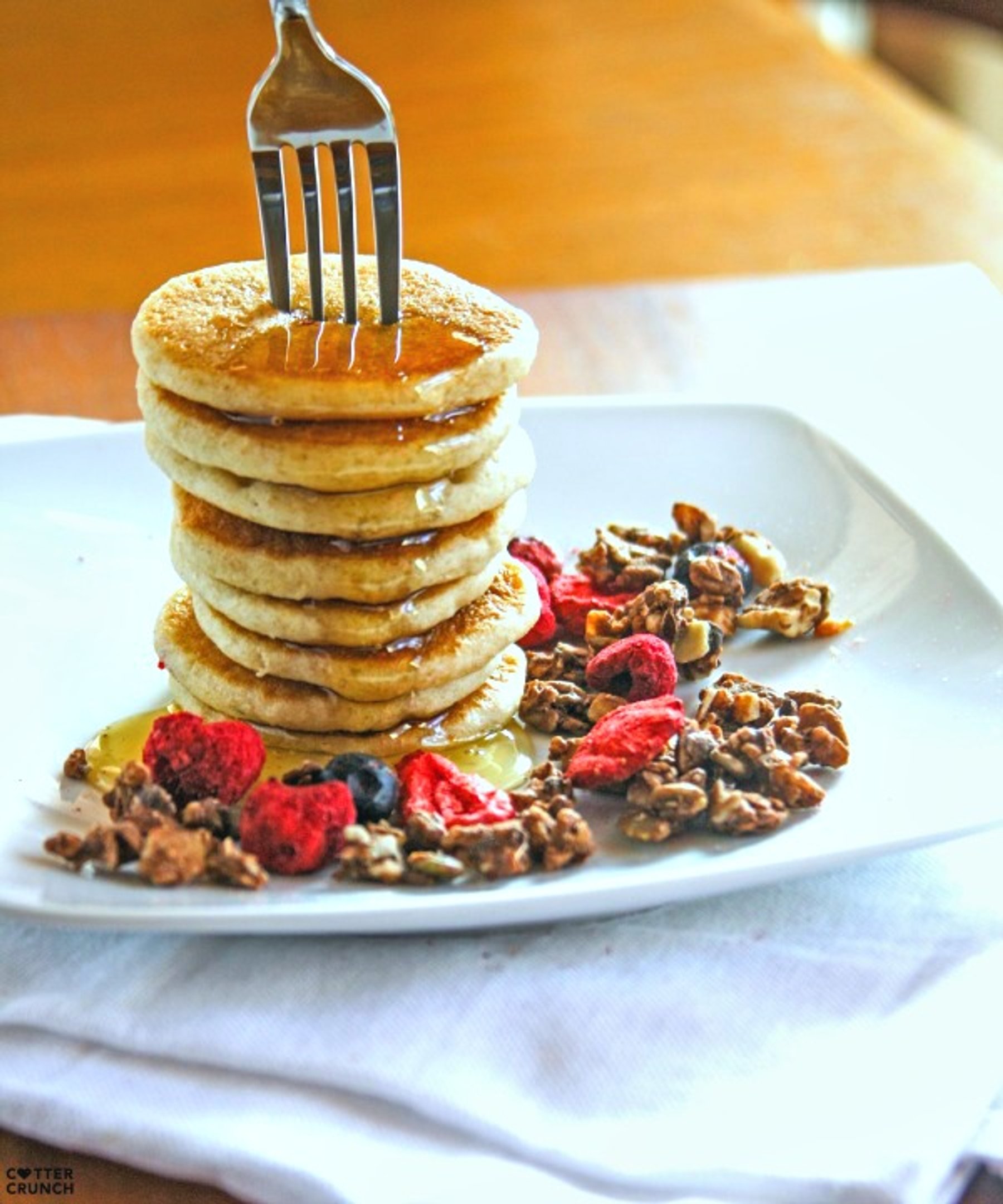 Looking for some Protein Packed and Gluten free Breakfast ideas? These pancakes are easy to make and great for travel! On the go, in the air, or on the road! Oh and simply delicious.