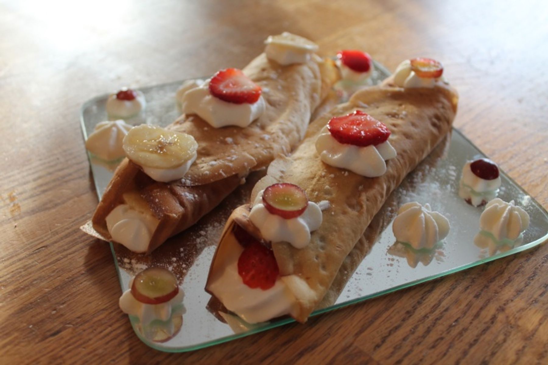 A basic crepe recipe that is sweet-like and pairs well with fruit with whipped cream or any other desired spreads :)