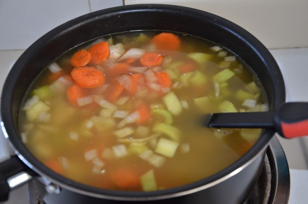 Chop onion, carrots, and celery. Coat a frying pan with the olive oil and sauté the vegetables, with the salt and pepper, for 5-8 minutes or until almost tender. (We like the veggies to be a little crunchy...
