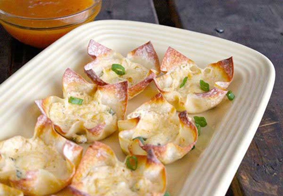 Mix the rest of the ingredients together in a small mixing bowl then fill each wonton with a...