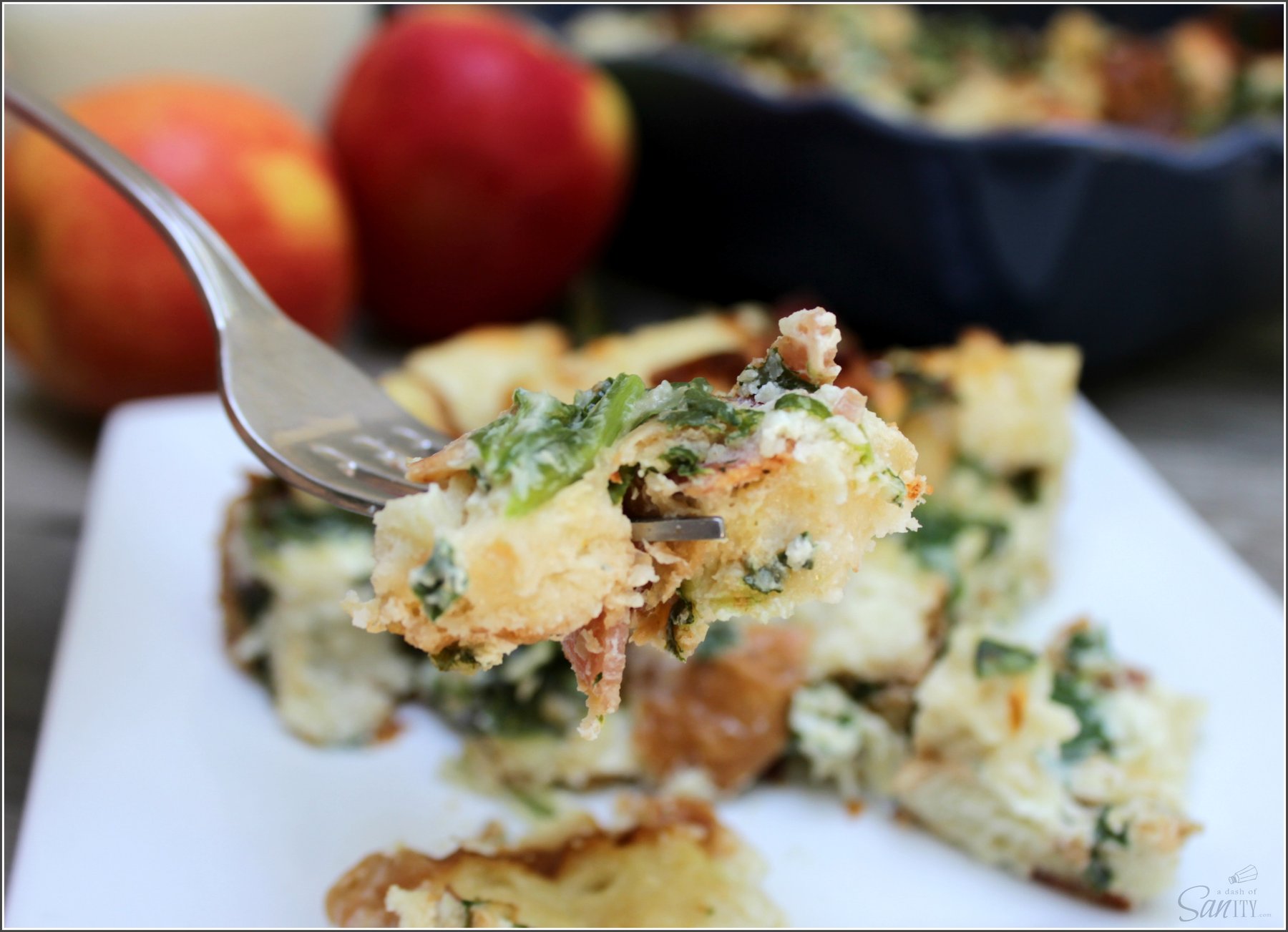 Simple, easy and delicious this breakfast casserole has many layers of flavor with just a few ingredients, including bacon, spinach, egg whites and smoked Gouda.