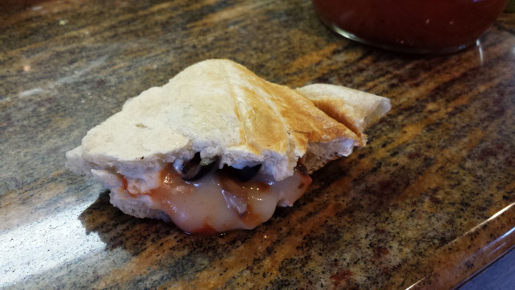 If you don't have a sandwich maker, try leaving the pizza sauce out and cooking it with a waffle iron.